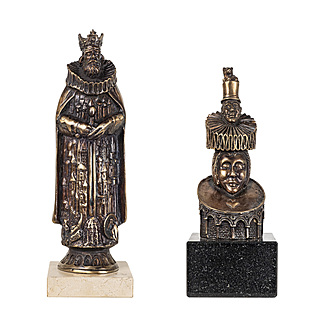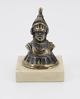 rzeźba z brązu, podstawa z kamienia; wys. całkowita 11,5 cm;
