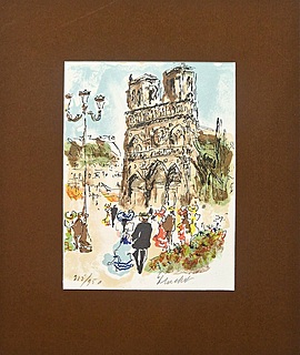 Litografia barwna, papier pergaminowy 12,5 x 18 cm w świetle passe – partout o wym.22 x 29 cm; sygn. ołówkiem p.d. „Huchet”; opisany l.d. 215/350.
