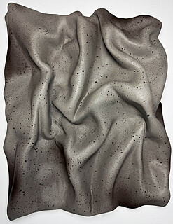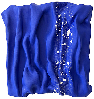 technika mieszana (tkanina, gips, akryl, spray akrylowy, lakier błyszczący, technika własna), płótno, ok. 53 x 45 x 4,5 cm,