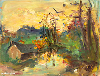 Na odwrociu etykieta z odręcznym napisem „Brzegi Loir jesienią”