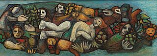 olej, deska; 56 x 146 cm (wymiar kompozycji);