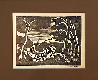 drzeworyt "odbitka późniejsza" wg.wzoru: Wacław Wąsowicz ''Na plaży'',