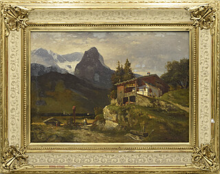 Na lewej listwie ramy fragment naklejki (druk, maszynopis): 9.4 | Museum of Art | [EX] HIBITION | [p] aintings; na g. listwie (biała kreda):...