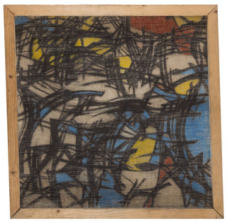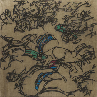 tempera, węgiel/płótno, 90 x 90 cm