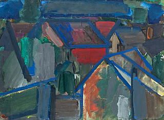 na odwrocie: "Wiesław Borowski Inowłódz- Dachy 1962" i fragmenty kartki wystawowej. Pochodzi z pracowni artysty.