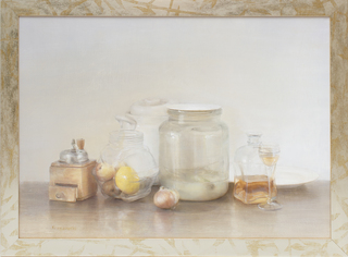 olej, płótno, 40 x 50 cm kompozycja, 44 x 54 w oprawie