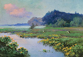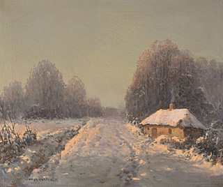 Olej, tektura; 24 x 34 cm