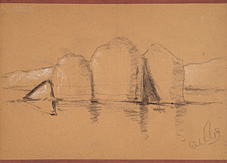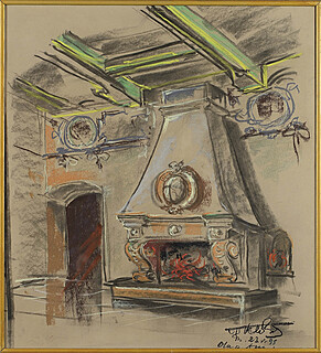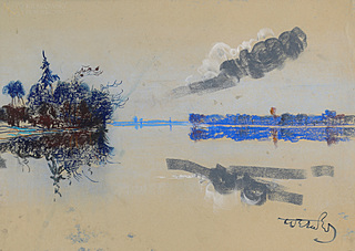 Pastel, papier niebieski; 21 x 40,5 cm (w świetle p-p)