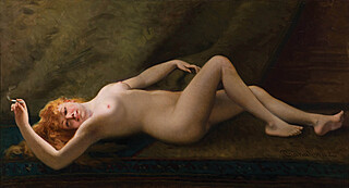 Na odwrocie owalny stempel paryskiego składu przyborów malarskich: TOILES TABLEAUX & COULEURS | ENCADREMENTS | LATOUCHE | PARIS | 34, Rue de...