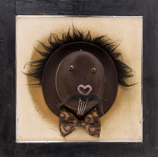 asamblaż, technika mieszana/drewno, metal, tkanina, tworzywo sztuczne, 60 x 48,5 cm