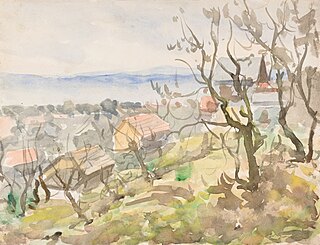 Na odwrocie szkic pejzażu nadwodnego (akwarelą).