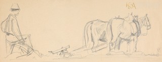 olej, tektura, 35 x 49 cm, sygn. p.d.: "Wlastimil Hofman", Na odwrocie szkice malarskie (olej) i rysunkowe (tusz) kompozycji z orką sygnowane ołówkiem p.d. monogramem "WH"