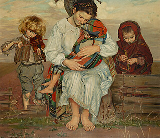 1) - autorsko opisany: „Dziecięce prace” / Lewy bok od widza tryptyku / Janka Wawrościanka ze...