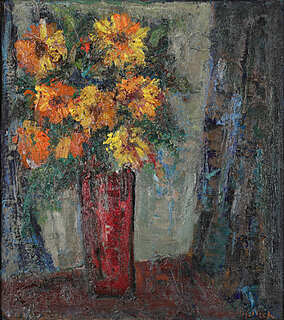 na odwrocie nalepka wystawowa z BWA w Krakowie z tytułem: Kwiaty.