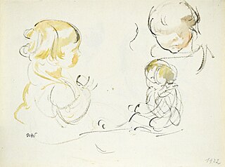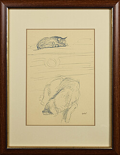 Na odwrocie akwarelowy szkic buzi dziecka i szkice kur; oraz doklejona karteczka z wybitym owalnym stemplem z napisem wokół: ZE ZBIORU...