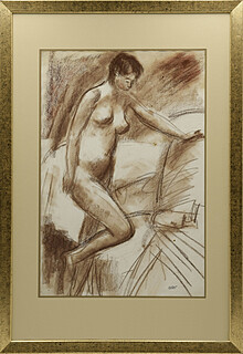 W l. 1891 -1895 studiował w krakowskiej SSP, najpierw u W. Łuszczkiewicza i J. Matejki, później w pracowni L. Wyczółkowskiego. W l. 1901 i 1902 kontynuował naukę w Rzymie i Florencji. W 1907 r. rozpoczął pracę w krakowskiej ASP, z którą związał się do końca życia; trzykrotnie pełnił funkcję rektora. Po 1908 r. twórczość skoncentrował głównie na problemach luminizmu malując w manierze postimpresjonistycznej. W okresie międzywojennym zasłynął jako malarz portretów i aktów. Od 1915 r. malował przede wszystkim rozsłonecznione kalwaryjskie pejzaże i martwe natury. Prezentowany pastel przedstawiający kobiecy akt, pochodzi z młodzieńczego okresu twórczości artysty. Przejawiają się w nim inspiracje ekspresjonistyczną teorią „nagiej duszy” S. Przybyszewskiego, fascynacja sztuką E. Muncha i F. Ropsa, lekturą dramatów A. Strindberga i dzieł filozoficznych A. Schopenhauera. Weiss postrzega wówczas kobietę przede wszystkim jako emanację zła i narzędzie szatana. Powstają studia „kobiet upadłych”, porzuconych nad ranem, których moralną kondycję dopowiada niekiedy namalowana w rogu kompozycji moneta (por. „Upadła dziewczyna", 1898, katalog wystawy „Totenmesse. Munch, Weiss, Przybyszewski”, Muzeum Literatury w Warszawie, Warszawa 1995, il. 16).
