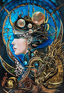 sygn., opisany i dat. na odwrocie: Żaneta Chłostowska / -Szwaczka / "Space construction" / acrylic, canvas, 100x70 cm, / 2024 / "Konstrukcja kosmosu"