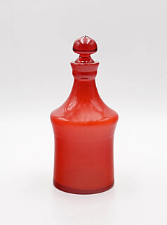 szkło artystyczne użytkowe selenowo-kadmowe, (tycjan zapalany, wystrzygany); wys.: 16 cm