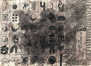 tusz pędzel, lawowanie, papier czerpany