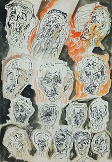 Tusz, piórko, akwarela, gwasz, papier beżowy; 33 x 40 cm (w świetle p-p)