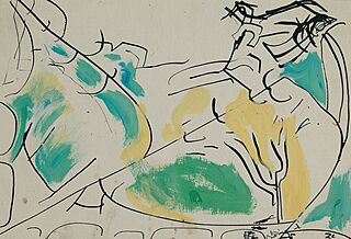 Tusz, piórko, gwasz, papier; 19,5 x 28,5 cm (w świetle p-p)