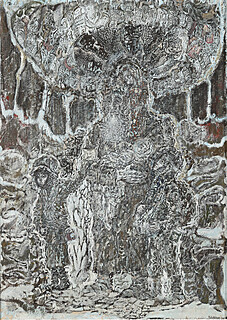 Tusz, gwasz, akwarela, złota farba, papier; 34,5 x 28 cm