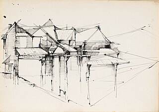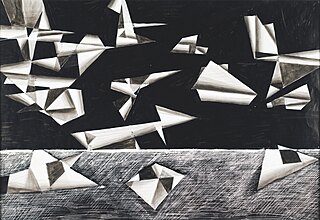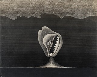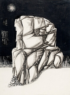 tusz, technika własna, papier; 44,5 x 56 cm;