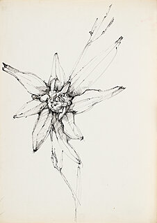 tusz, technika własna, papier; 29,5 x 42 cm;