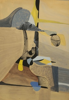 gwasz, tusz, papier, 20,5 x 29,5 cm w świetle passe-partout