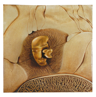 relief, drewno polichromowane, karton/płyta pilśniowa i paździerzowa, 100 x 70 cm