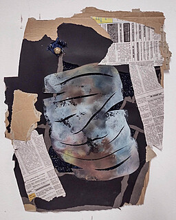 kolaż/malarstwo olejne, 35 x 58 cm, sygn.