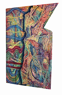 sygn., dat. i opisany na odwrocie: Ziemowit Fincek / 2021 / "Wizja z falami." / 117x70x3 cm.