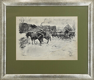 węgiel, papier; 28,5 x 41 cm (w świetle oprawy);