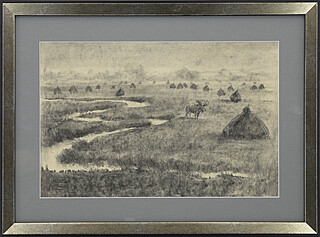 węgiel, papier; 22,5 x 36 cm (w świetle oprawy);