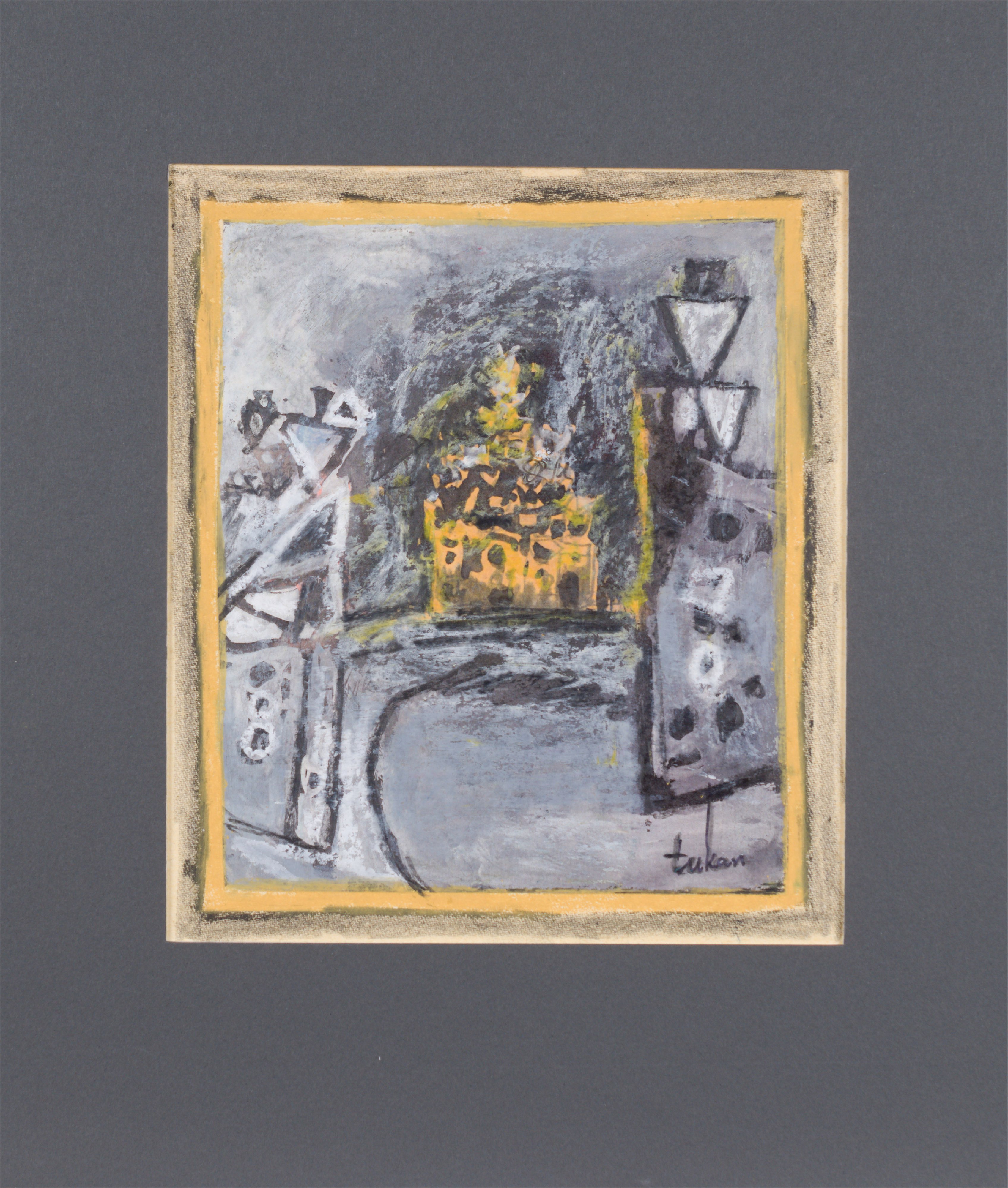technika mieszana: tusz, akryl, gwasz, kredka, papier; 20,3 x 17,3 cm (w św. passe-partout);