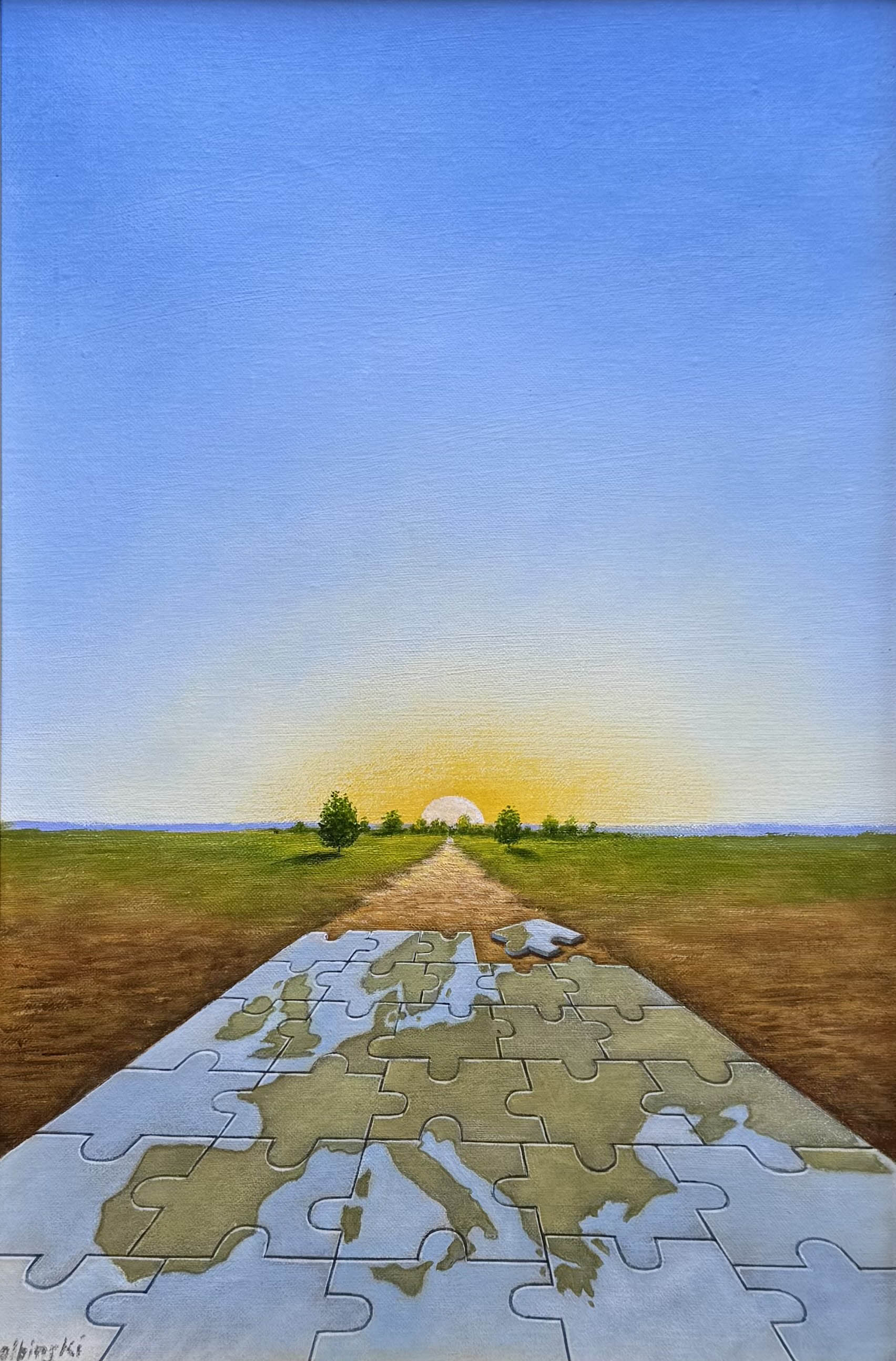 akryl, olej, płótno, 45 x 30 cm (w oprawie 73 x 58 cm),sygnowany l.d.: 'Olbinski'