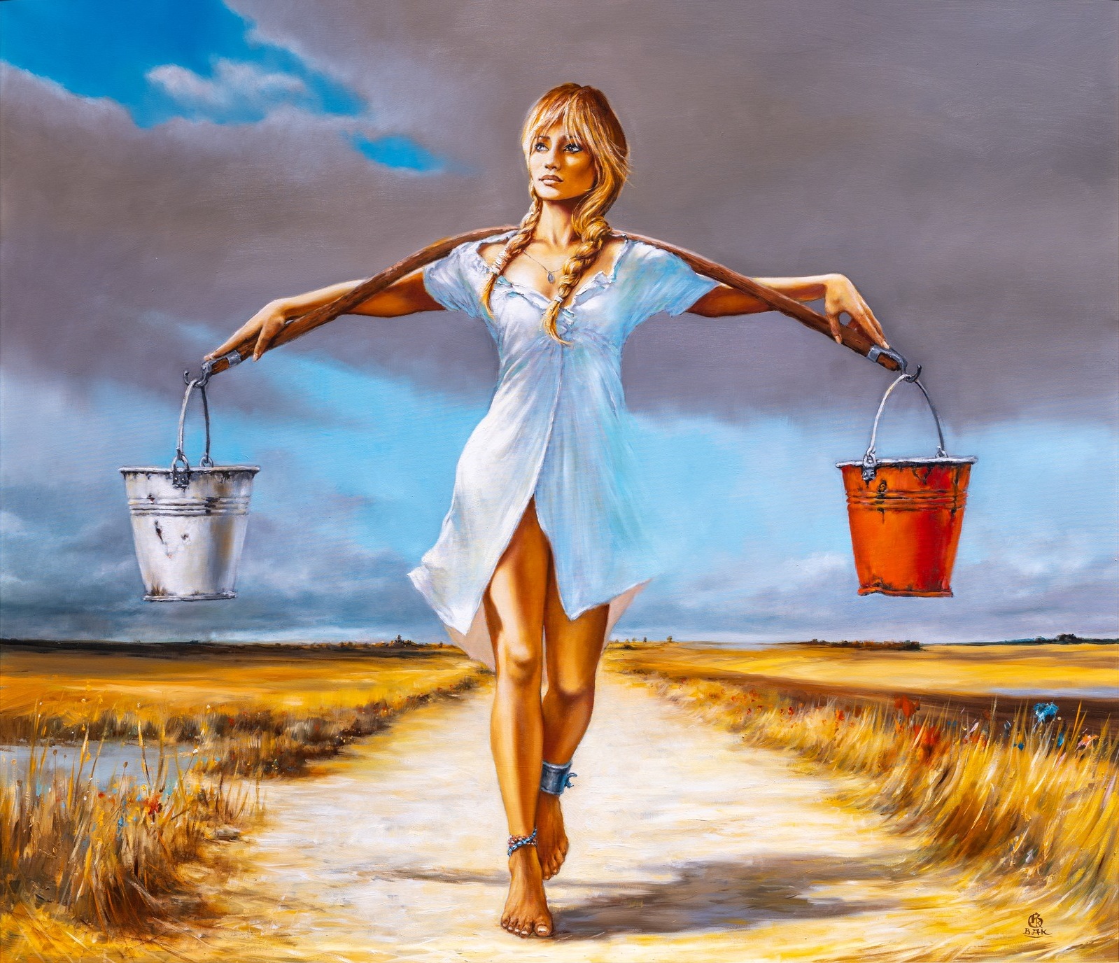 olej, płótno, 130 x 150 cm (w oprawie 157 x 177 cm),sygnowany p.d.: '[monogram BK] BAK' oraz opisany na odwrocie: ''POLONIA II' 2022 KAROL BĄK monogram artysty'