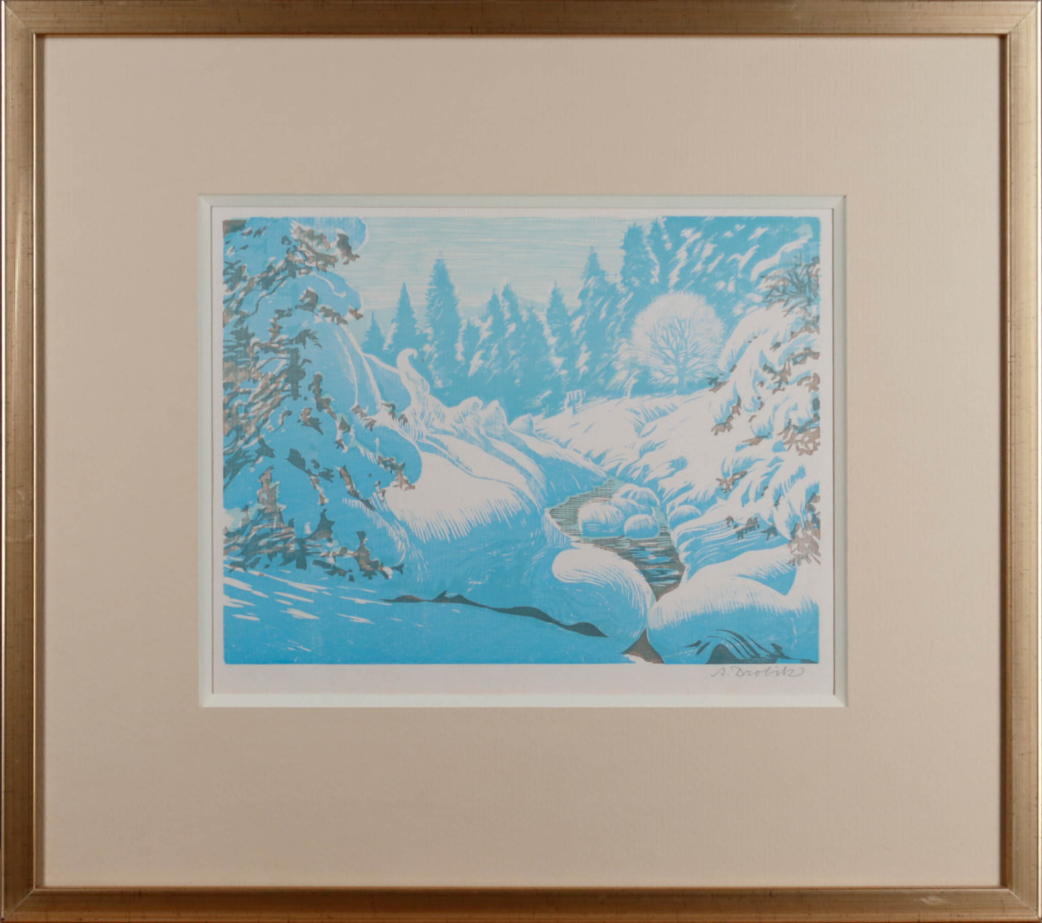 drzeworyt barwny, papier, 18,5 x 24,5 cm; (odcisk płyty);sygn. p.d.: A.Drobik
