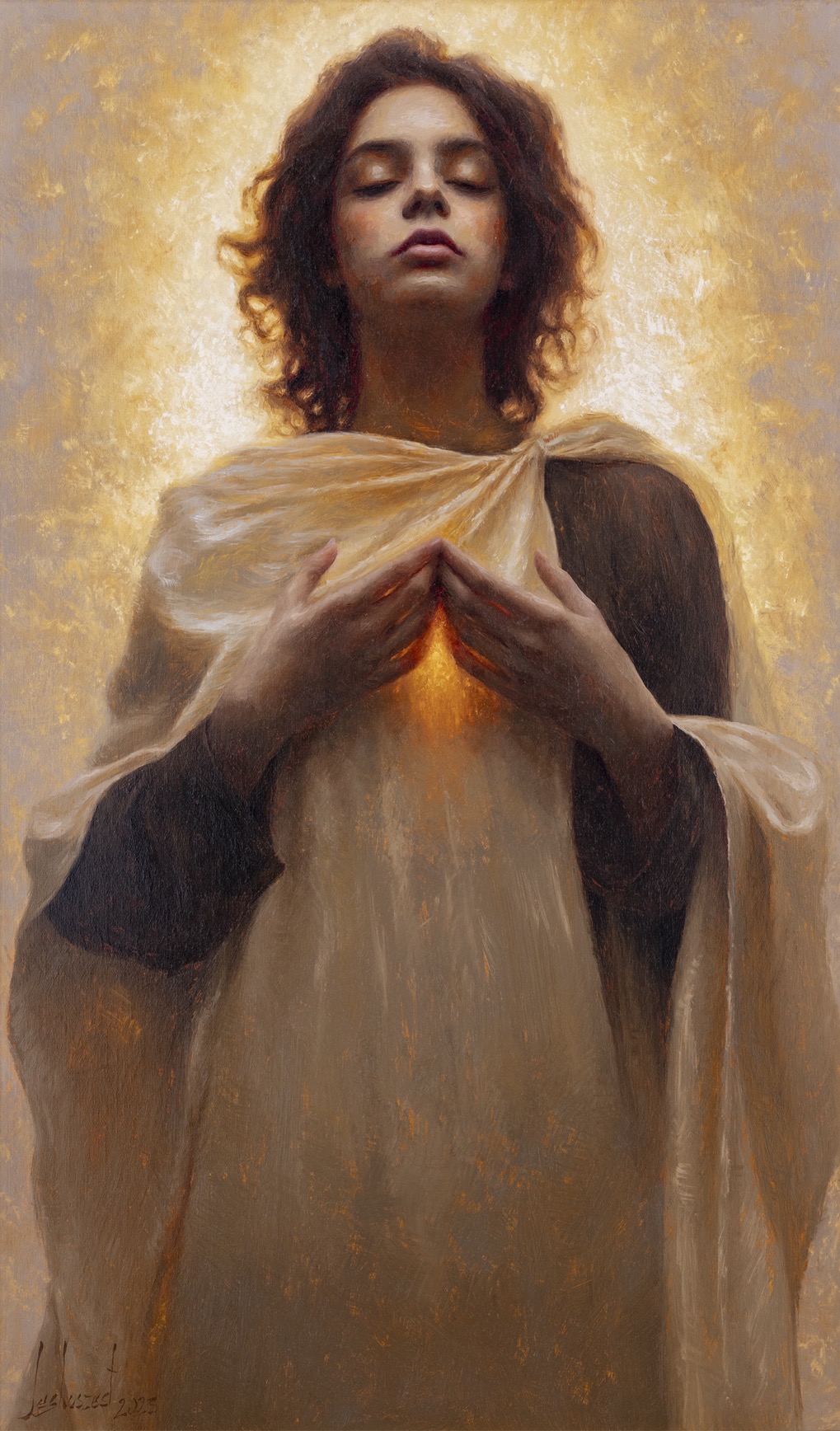 olej, płótno, 101 x 61 cm (w oprawie 124,5 x 84 cm),sygnowany l.d.:' Lechoszest, 2025' oraz opisany na odwrocie: 'DAMIAN LECHOSZEST|"LOVE"|40' X 24'|OIL ON LINEN CANVAS|2025'
