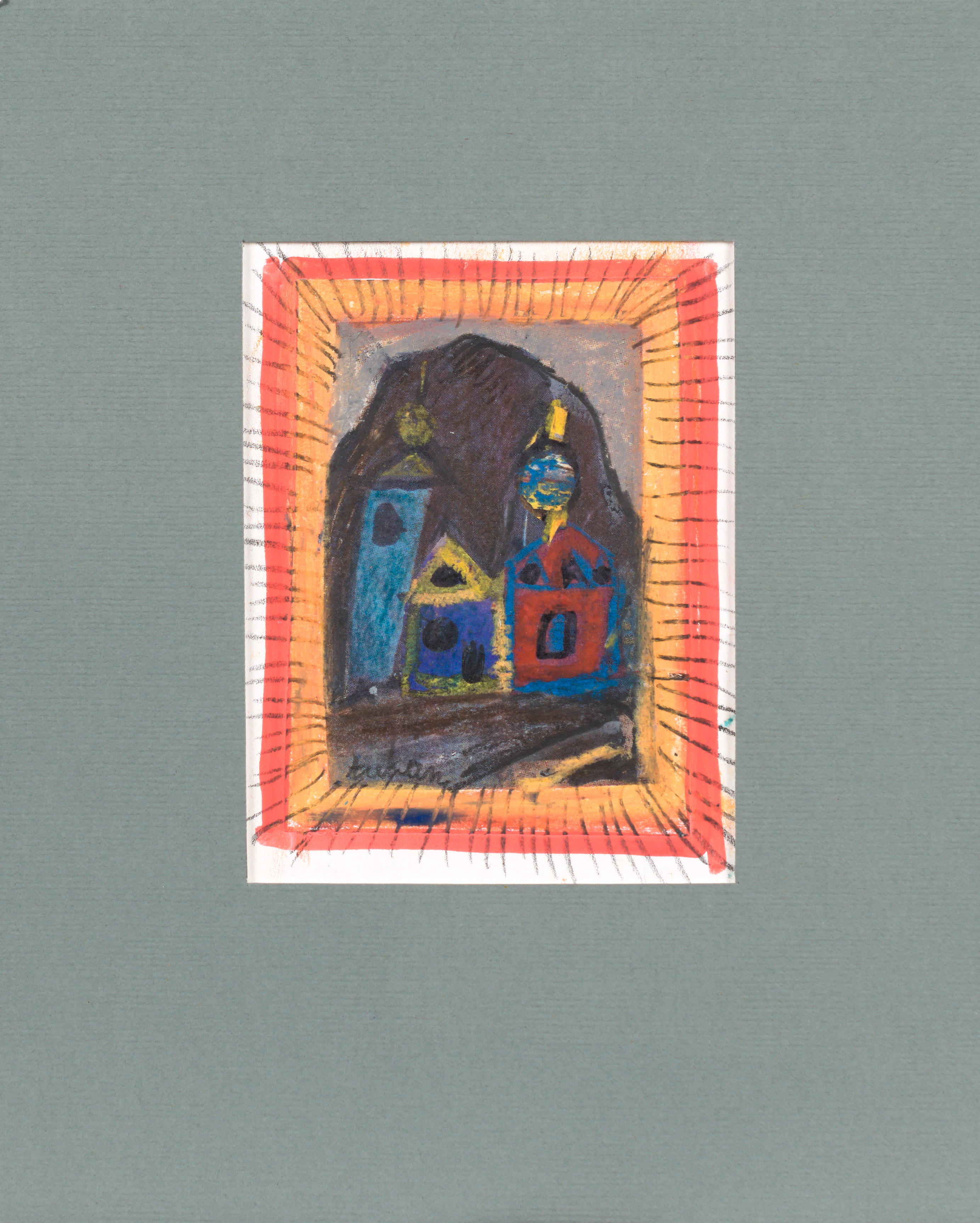 technika mieszana, papier; 11,1 x 8,4 cm (w św. passe-partout);sygn. l. d.: tukan.