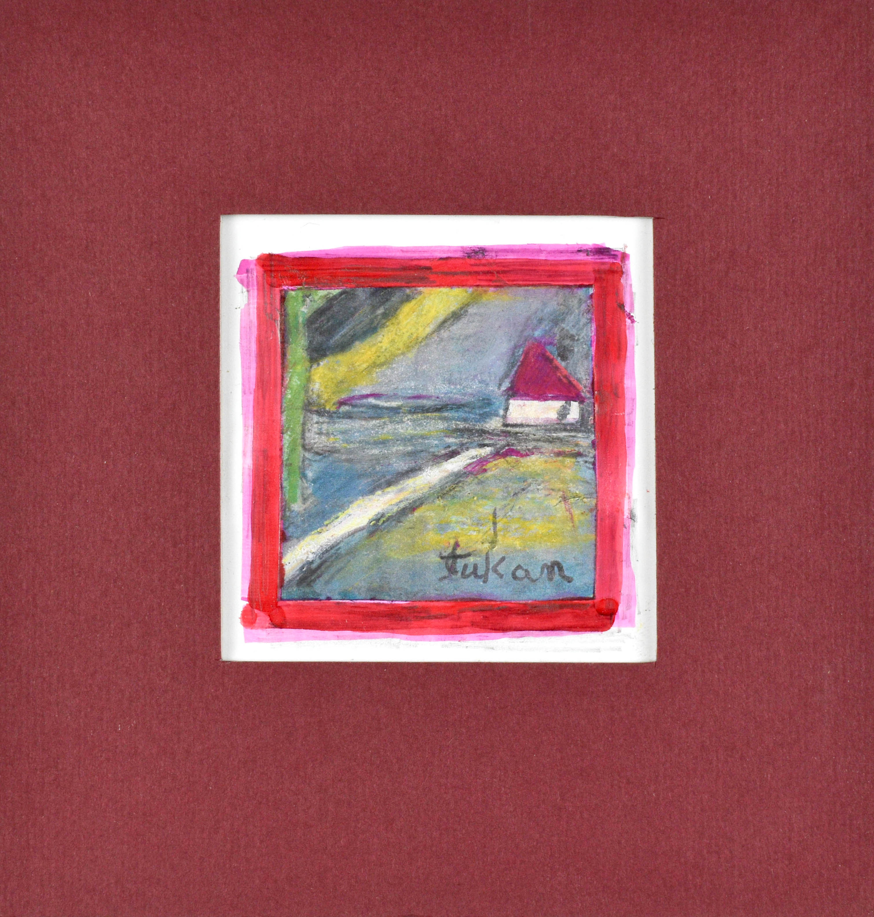 technika własna, papier; 6,7 x 6,6 cm (w św. passe-partout);sygn. p. d.: tukan.