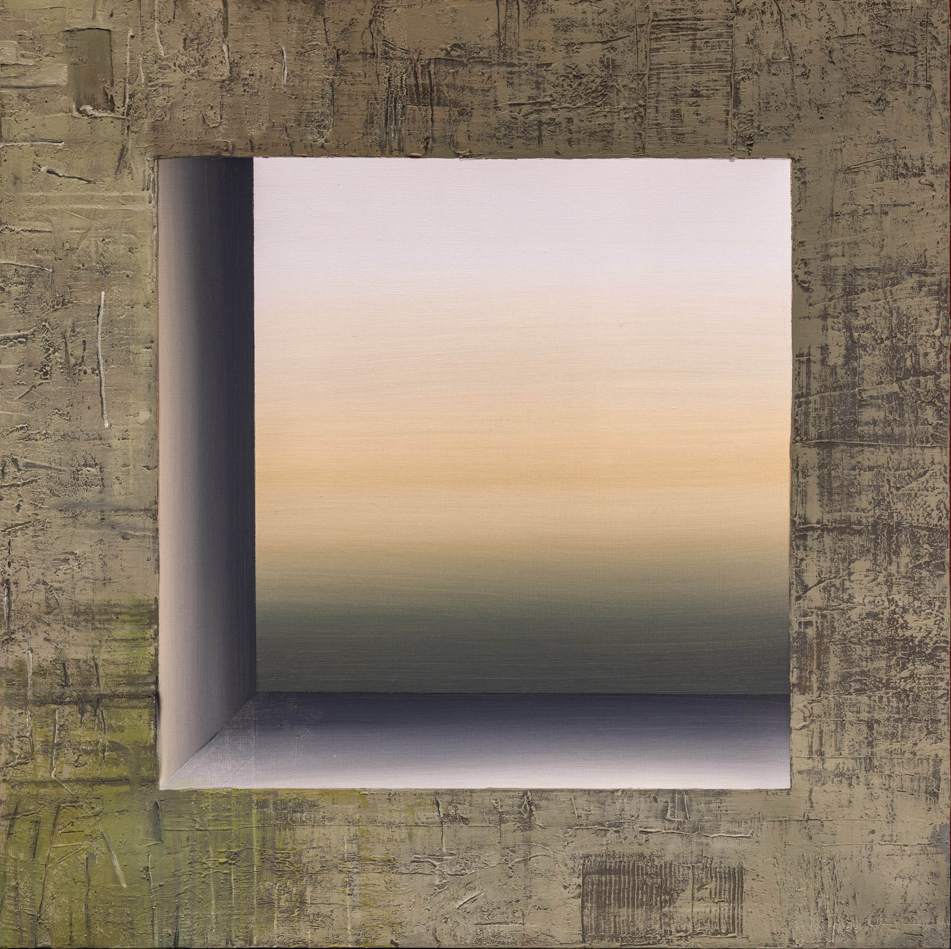 technika własna, płótno, 90 x 90 cm,sygnowany na odwrocie: 'EWA ZAWADZKA | 2025 | z cyklu: | OPOWIEŚCI PEJZAŻU" | T-03 | EWA ZAWADZKA | 2025'