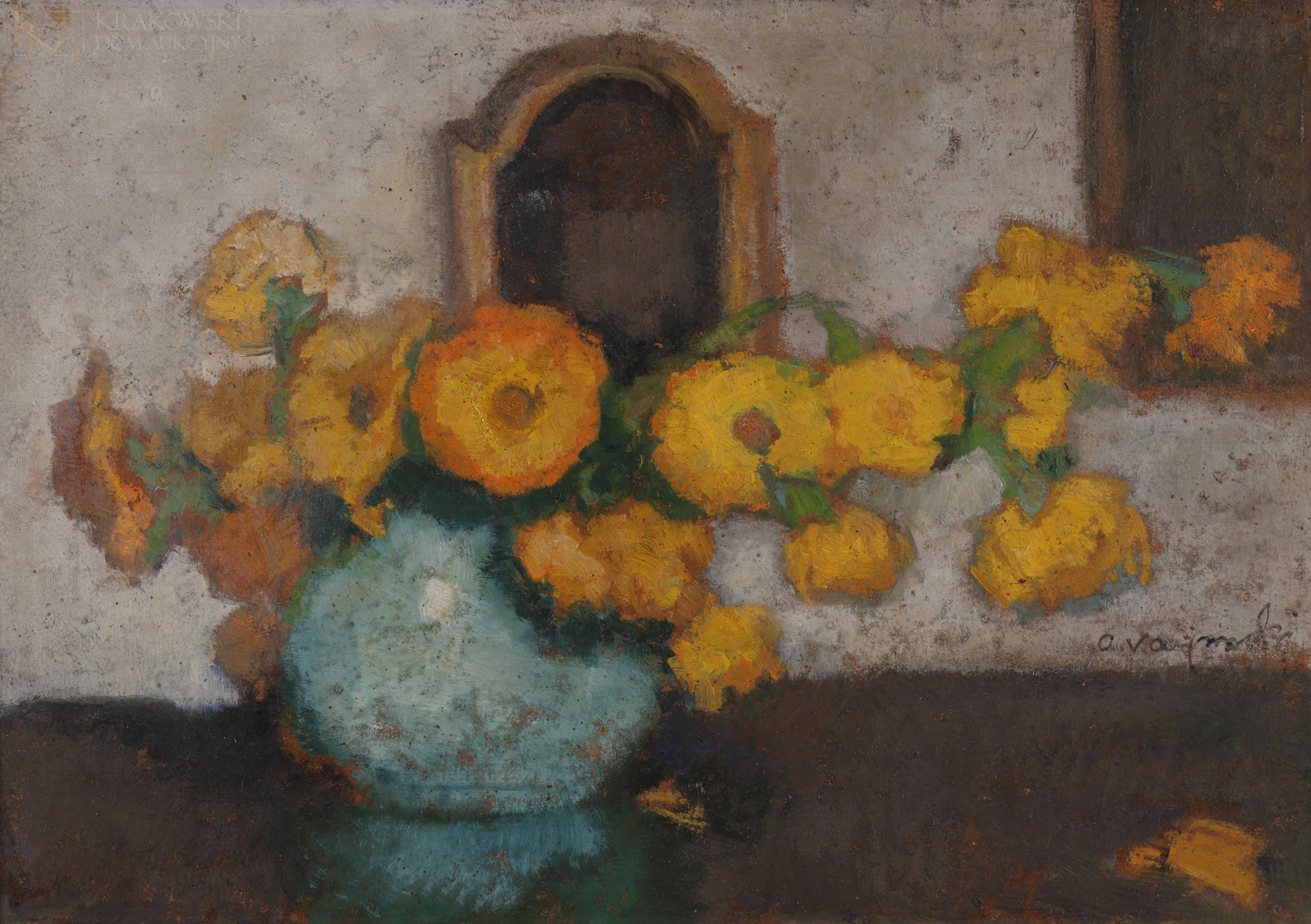 Opisany na odwrocie: "Nagietki | mal. a. Karpiński | Kraków"