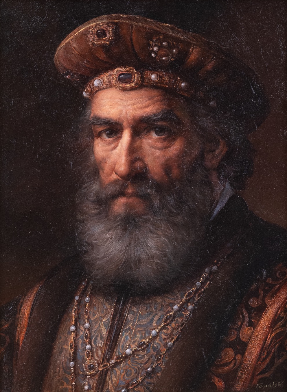 olej, płótno, 40 x 30 cm (w oprawie 78,5 x 68,5 cm),sygnowany p.d.: 'Topolski'