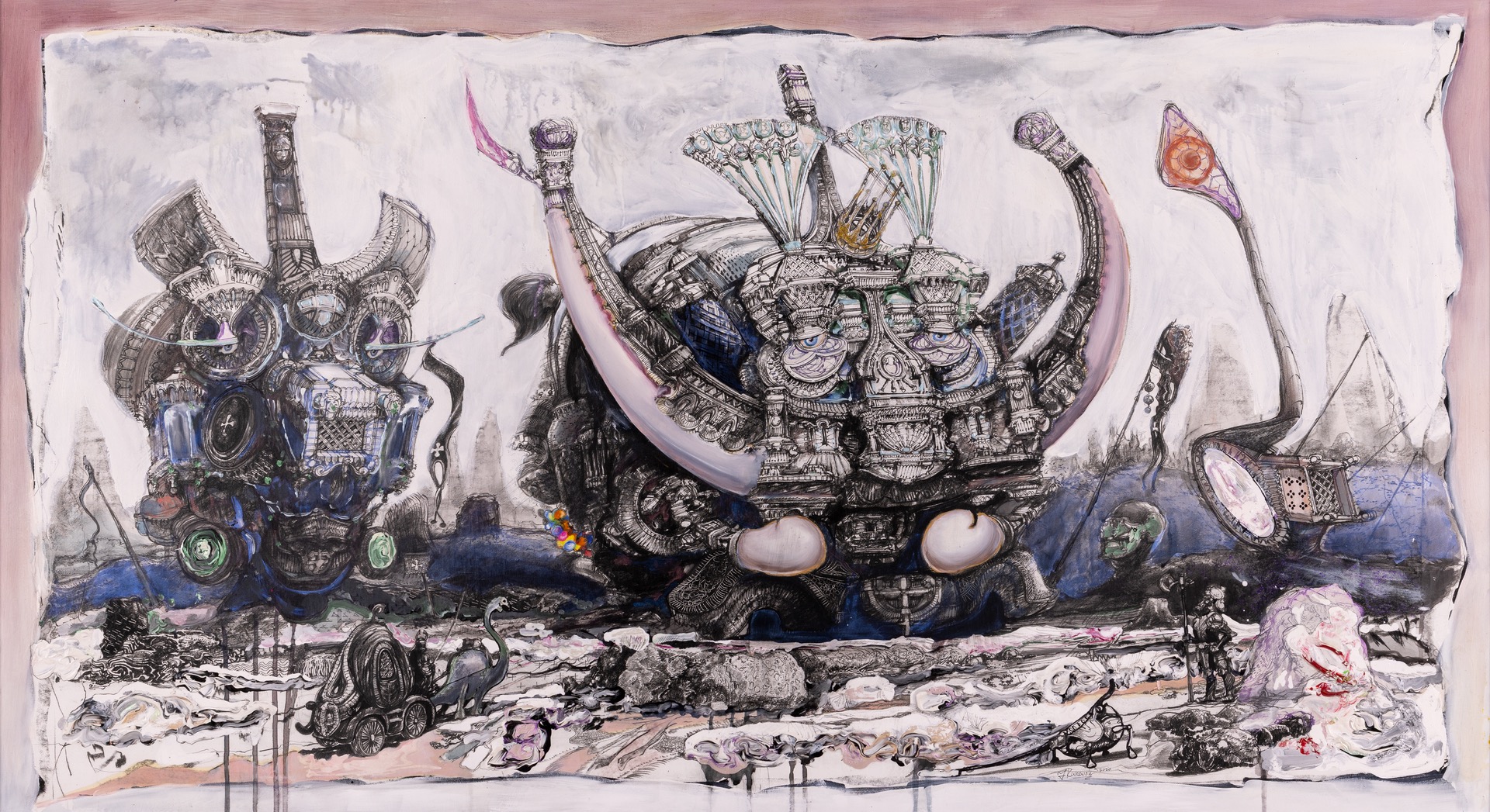 technika mieszana, płótno, 100 x 180 cm (w oprawie 125 x 204 cm),sygnowany p.d.: 'FKurzewski 2020' oraz opisany na odwrocie: 'FKurzewski 2020'