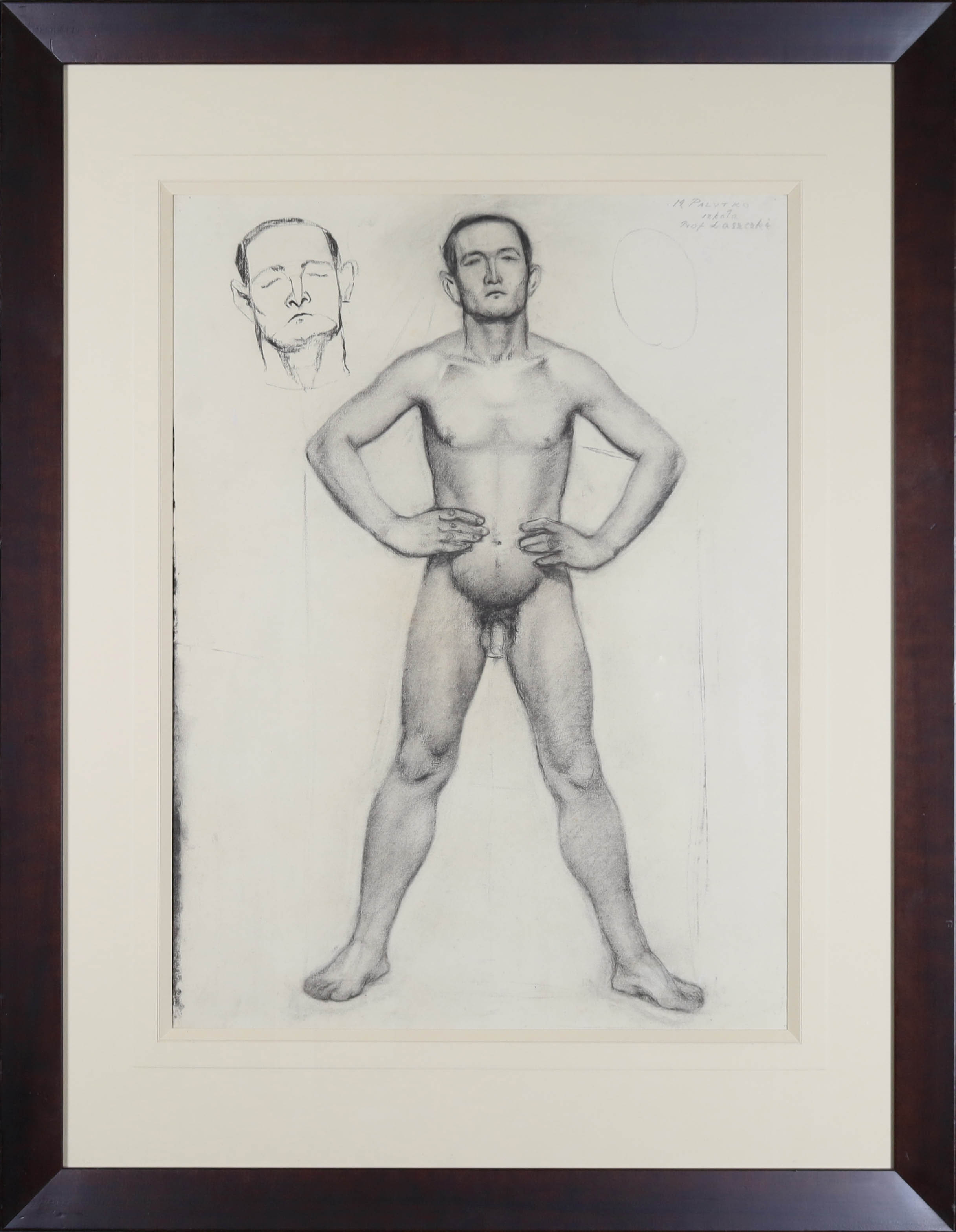 węgiel, papier, 61,5 x 46,2 cm; (w świetle oprawy);opisany p.g.: M. PALUTKO szkoła Prof. Laszczki