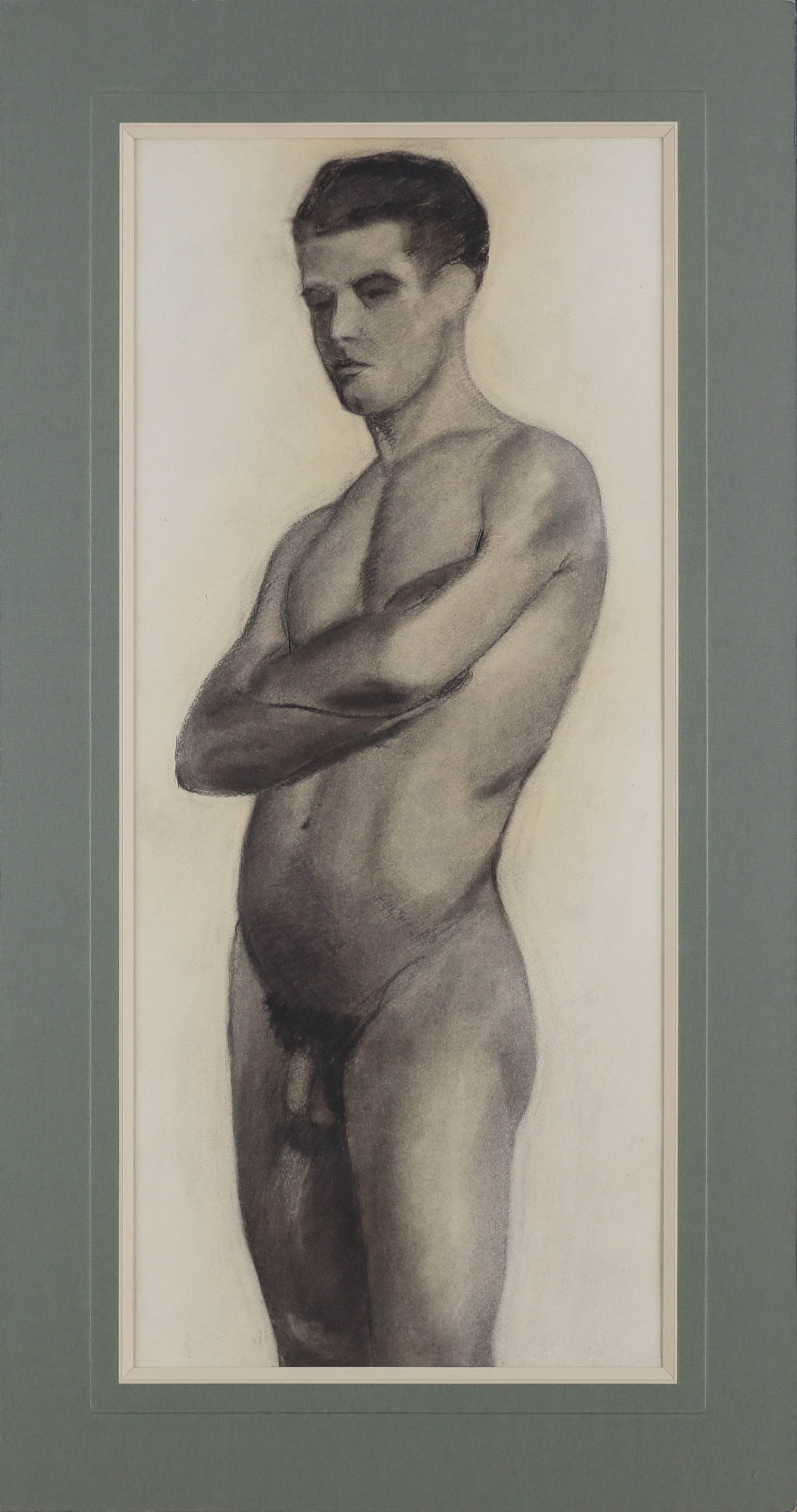 węgiel, papier, 67,8 x 30,3 cm; (w świetle oprawy);sygn. na odwrocie: Palutko 2 g 1/2 rocza