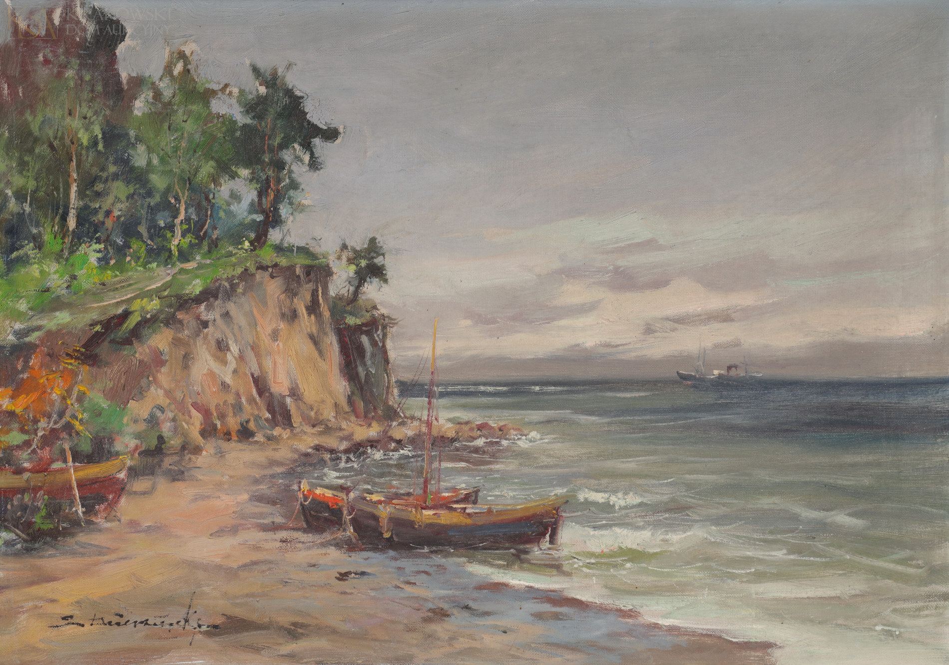 Opisany na odwrocie: "Eugeniusz Dzierzencki | Skalisty brzeg w Orłowie | 70 x 50"