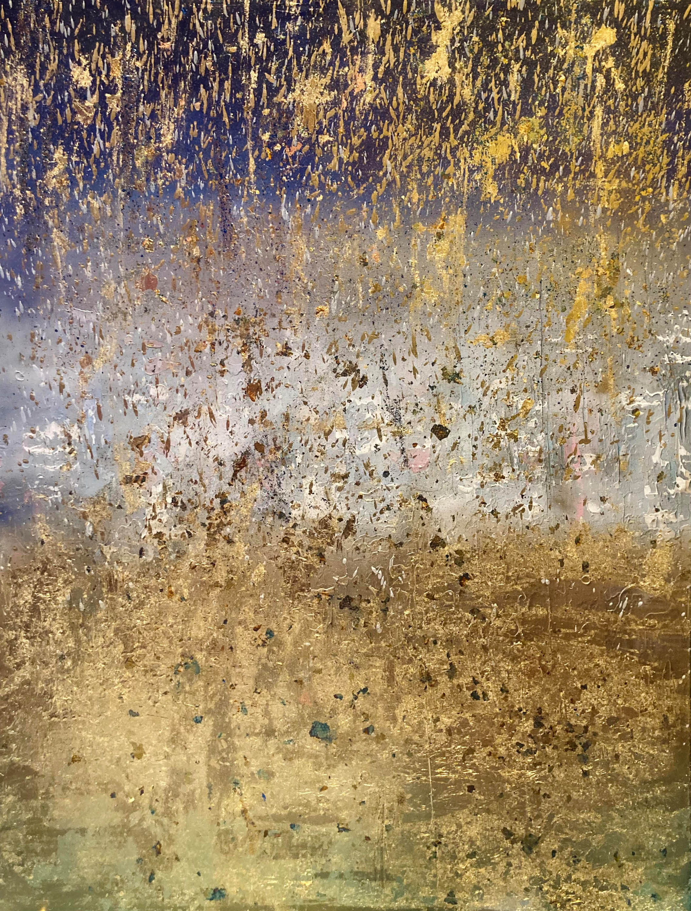 technika mieszana, szlagmetal, akryl, płótno, 113 x 100 cm,opisany, sygn i dat. na odwrocie