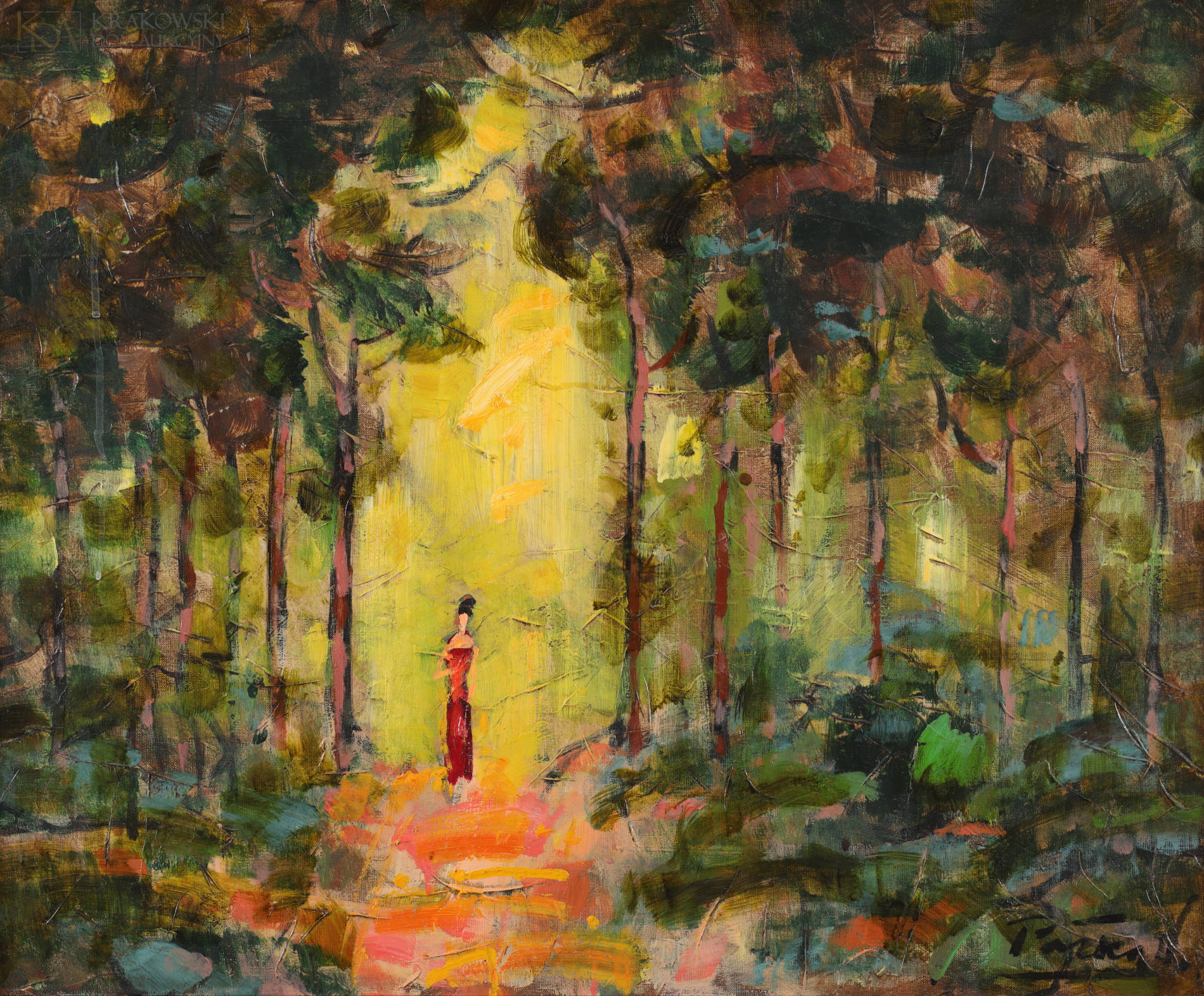 Na blejtramie nalepka autorska oraz opis "LEŚNA DROGA".